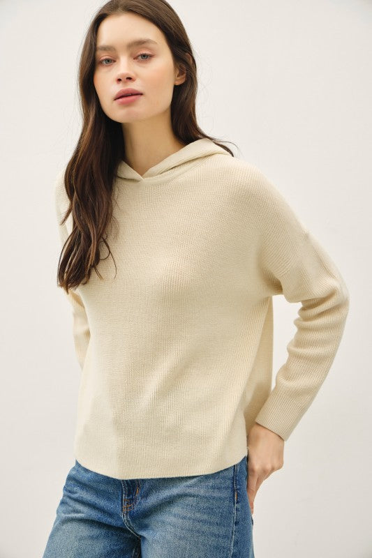 Soft, easy and light! The Lexis Hooded Sweater is a soft touch, long sleeve hoodie that will be perfect with leggings layered with a vest or cute jeans with flats. She has a relaxed oversized fit with a drop shoulder silhouette. Lightweight, wool blend.